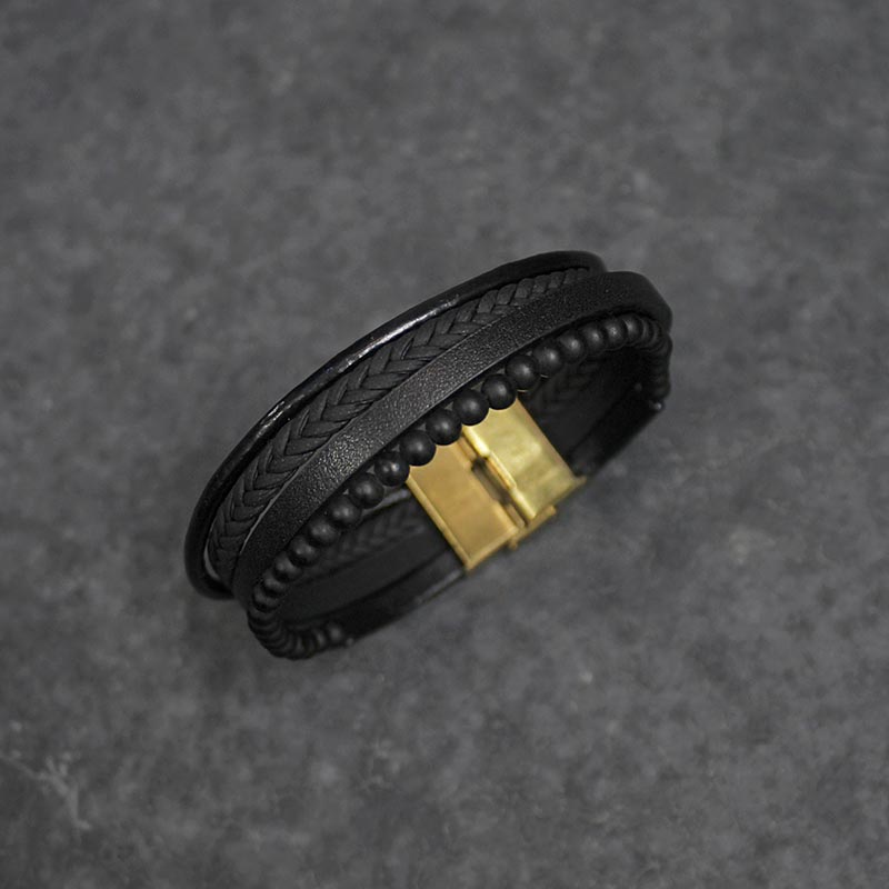 دستبند مردانه چرم طبیعی مشکی